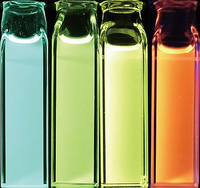 置換基など分子構造を工夫することで、色の制御も可能です。現在までに、変色する化合物としては赤・黄・紫、発光する化合物としては赤・緑・青・水色の開発に成功しています。