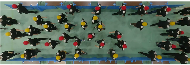 図2 対向した歩行者集団を用いた実験。