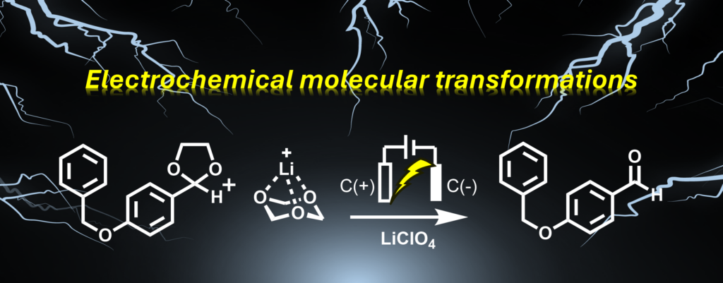 図3 電気を用いた新しい脱保護法(出典:https://doi.org/10.1039/D4GC06348A)。本成果はGreen Chemistry誌のCover Pictureにも採択されている。(山田先生ご提供)